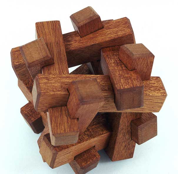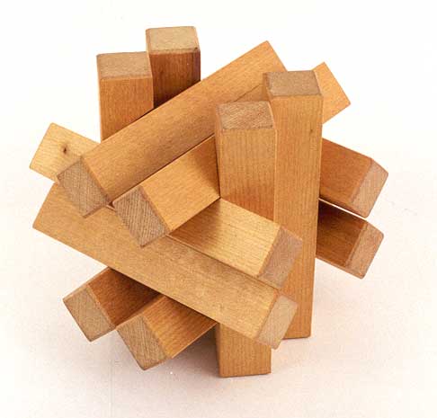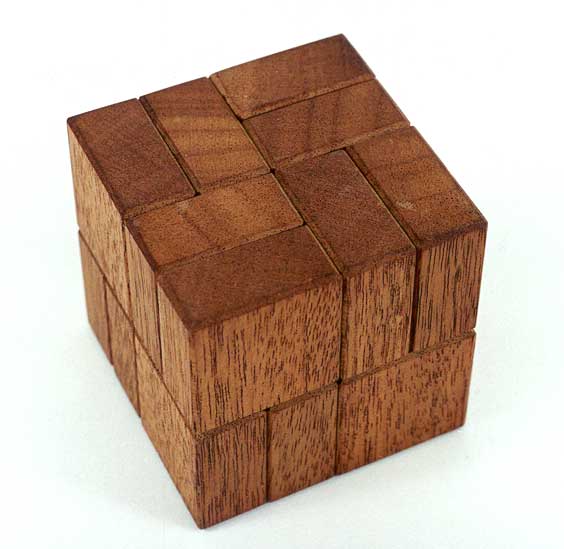 Dubois Size: 10x10x10cm Notes: 12 identical pieces. Fit is loose, more so than is typical for this puzzle. |
