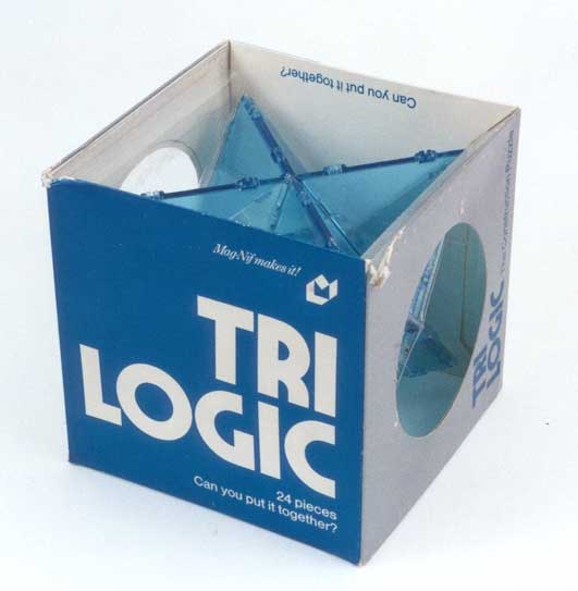 | Manufacturer: Mag-Nif Box Size: 13x13x13cm Notes: Original box; construction puzzle with 24 hinged equilateral triangles. |
