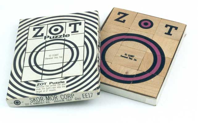 Skor-Mor Size: 13x10x1.5cm Notes: 17-move sliding block puzzle; original packaging. |
