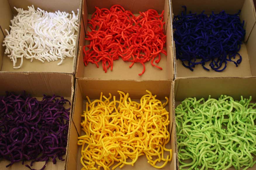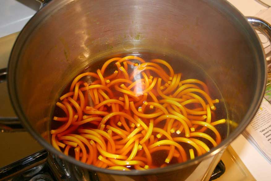 Yellow pieces in dye pot look like French fries.